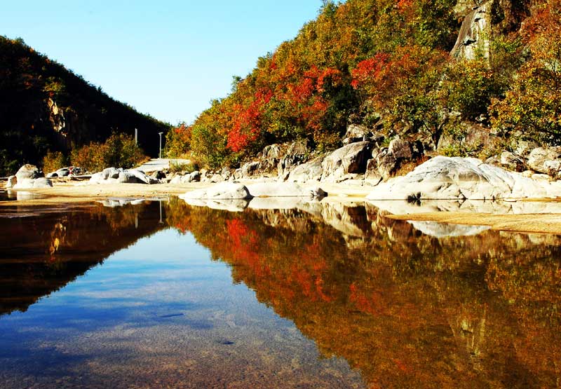 五龍?zhí)段挥趯毺炻下吹穆由缴希诩s五公里的深山峽谷中因瀑布跌落,自然形成了五個(gè)潭,依勢(shì)為黃龍?zhí)?、赤龍?zhí)?、白龍?zhí)丁⒆淆執(zhí)?、黑龍?zhí)?。版?quán)所有聊城聊之旅國際旅行社有限公司,轉(zhuǎn)載必究!據(jù)傳潭中因蟒蛇成龍而故名。黑龍?zhí)蹲顬閴延^,一掛80余米的瀑布從山崖的絕壁處跌落形成。水花飛濺,聲響震耳,活現(xiàn)一幅珍珠倒卷簾的壯觀畫卷。潭旁的絕壁石態(tài)千姿,西端有一峰高聳秀麗,其周圍的山景極有氣勢(shì)。順黑龍?zhí)断滦胁贿h(yuǎn)即為紫龍?zhí)叮幱谏焦葕A縫之中,西側(cè)行走艱難,行人需攀物方可前行。潭小、谷深、水清,一目了然,令人心曠神怡。白龍?zhí)吨車鼮殡U(xiǎn)峻,素有“一線天”之稱,陰森森地令人驚顫,觀之隨即就會(huì)油生“深潭若谷”之感。赤龍?zhí)渡絼?shì)坦緩,看上去讓人神秘莫測(cè)。最下面的黃龍?zhí)短洞蠖?,稱為“無底深潭”。五龍?zhí)兜奶毒把琶榔婷?,周圍的山景更是點(diǎn)綴得如詩似畫。嶺峰羅列,峰峰疊翠,各種各樣的樹木郁郁蔥蔥,各種各樣的怪石絕壁爛漫多姿。五龍?zhí)度缥孱w明珠鑲嵌在群峰峽谷之間,深山藏幽,幽而自然,版權(quán)所有聊城聊之旅國際旅行社有限公司,轉(zhuǎn)載必究!真是風(fēng)光無限。五龍?zhí)杜浜蠈毺炻_發(fā)旅游勝景,潛力巨大,前景可觀。