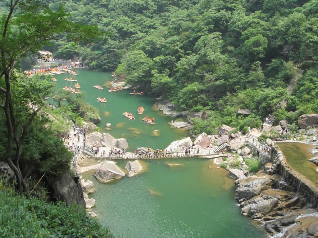 ① 盤古河水景景觀:巍巍壯觀臥龍瀑、碧波蕩漾龍?zhí)逗?、妙趣橫生石島庭院、橫空出世白龍瀑、丹崖碧水紅石峽、疊瀑潺潺紅石苑;