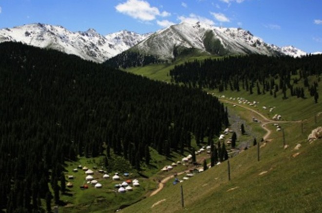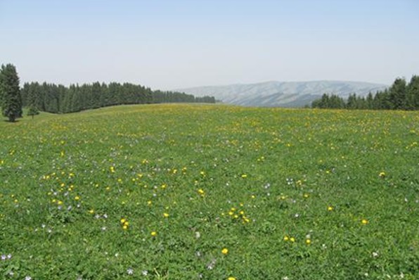 這是一處以生長大片金黃色菊花為特色的哈薩克草原牧區(qū)景觀旅游區(qū)。它位于西白楊溝的西側,為一緩坡傾斜的洪積扇臺面,海拔2000~2400米。春夏季節(jié),臺面上菊花金黃,百花爭艷,蜂蝶紛飛,一派典型的天山草原風光。菊花臺東側的中梁臺上建有與國際觀察水平接軌的中科院烏魯木齊天文臺,我國最大的直徑25米的射電天文望遠鏡。