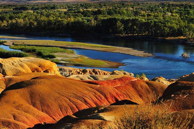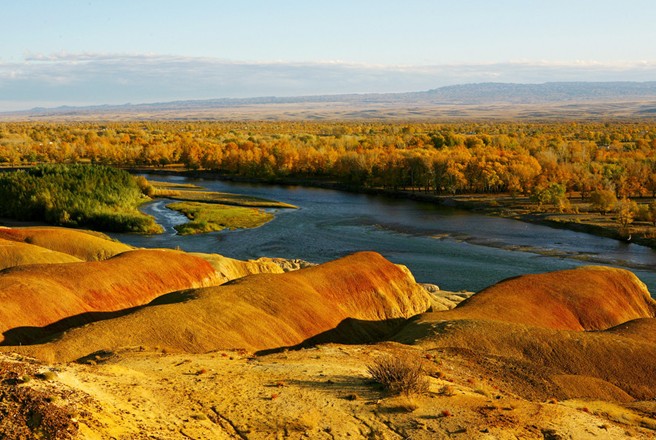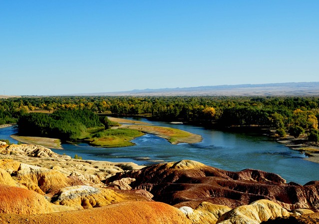 五彩灘一河兩岸,南北各異,是國家4A級景區(qū)。五彩灘又稱五彩河岸,位于額爾齊斯河流域,由于長期受風(fēng)蝕水蝕以及淋溶等自然作用的影響而形成的,屬于典型的雅丹地貌,“雅丹”是地理學(xué)名詞,維吾爾語“險峻得土丘”之意。其南邊是我國唯一向西流入哈薩克斯坦--俄羅斯--北冰洋的額爾齊斯河,僅次于伊犁河的新疆第二大河。