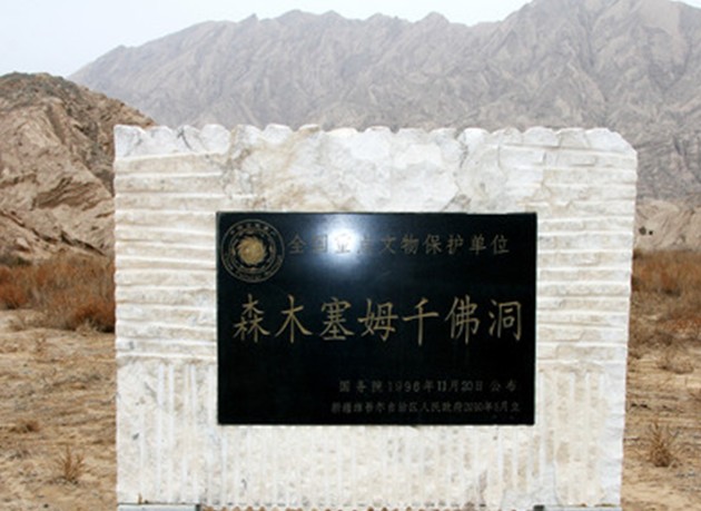 森木塞姆千佛洞屬全國(guó)重點(diǎn)文物保護(hù)單位,位于中國(guó)西北部新疆維吾爾自治區(qū)的庫(kù)車縣,是一處晉代至宋代(公元4~10世紀(jì))的佛教石窟群遺址。森木塞姆千佛洞主要分布于卻勒塔格山口直徑約800米范圍內(nèi)的山崖上。石窟大部分已經(jīng)遭到破壞,目前保存較為完整的有57座。洞窟分布在馬蹄形的山谷里,按地理位置可分為東、南、西、北、中五個(gè)區(qū),現(xiàn)有編號(hào)洞窟57個(gè)。