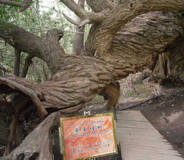 神木園其實(shí)是一處古墓地,它的原始名字叫庫(kù)爾米什阿塔木麻扎。在溫宿縣地圖上西北邊的一條公路兜住的那三個(gè)小圓點(diǎn),就是新疆聞名遐邇的天山神木園的標(biāo)注。溫宿縣志•卷二十七•第五章第四節(jié)古墓葬中對(duì)此記載如下:庫(kù)爾米什阿塔木麻扎位于薩瓦甫牧場(chǎng)場(chǎng)部東北10.7千米。地理坐標(biāo):東經(jīng)79°42′26″,北緯41°35′32″。面積680畝,海拔1700米,尚存古墓數(shù)十座。相傳公元11世紀(jì),沙特阿拉伯的一名叫蘇力塔庫(kù)爾米什賽依德的伊斯蘭教阿訇,帶領(lǐng)兩千名教徒,經(jīng)印度到中國(guó)傳教,受到當(dāng)?shù)厝说牡种撇l(fā)生沖突。敗退至此地時(shí),大部分教徒戰(zhàn)死,蘇也陣亡,便埋葬在這里,形成了一個(gè)占地頗大的麻扎。其中呈圓形的最大的一個(gè)是蘇的墳?zāi)?,雖年久失修,確仍保持著穆斯林古老墓式。麻扎四周為戈壁荒丘,內(nèi)卻以草綠、樹怪、泉多而聞名遐邇。該麻扎高出地面50米,滿山遍野長(zhǎng)滿了綠草,山地像披上了一張綠色的地氈。草地里有10余處泉頭,泉水淙淙,從草地穿行而過,樹形千姿百態(tài),有的似神龍游動(dòng),屈折盤旋,貼地而伸:有的樹高達(dá)96。23米;有的樹枝與根部相連,分不出那是枝,哪是樹根。很多樹都是百年以上的老樹,版權(quán)所有山東聊城聊之旅國(guó)際旅行社有限公司,轉(zhuǎn)載必究!有的老樹倒地后又從根部發(fā)出新枝,長(zhǎng)成參天大樹。庫(kù)爾米什阿塔木麻扎,既是穆斯林朝拜圣地,又是風(fēng)景勝地,每年到這里朝拜、旅游者達(dá)萬余人次。為保護(hù)這一勝地,1986年縣財(cái)政拔款4萬元,群眾捐款十多萬元,對(duì)麻扎清真寺進(jìn)行了修繕,并建筑了磚圍墻和架設(shè)了鐵刺圍欄。1989年11月,阿克蘇地區(qū)文物管理所普查隊(duì)來此地考查,被定為縣級(jí)文物保護(hù)單位,縣有關(guān)單位派有專人管理。麻扎東南20米處有一古墓群,計(jì)十余座,尚未發(fā)掘考察。這是1993年7月出版的溫宿縣志記載。從志書考證,神木園曾是一片處女地。公元11世紀(jì),蘇力塔庫(kù)爾米什及其2000名教徒傳教殉職葬于此地后,當(dāng)?shù)厝艘詭?kù)爾米什阿塔木麻扎為此地命名。如今那個(gè)古老的命名也只能從志書中去搜尋考證了。