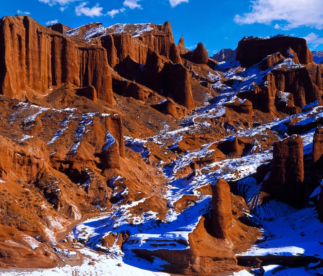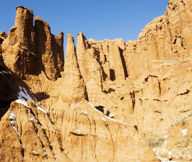 溫宿神秘大峽谷是2600萬年前內(nèi)陸湖泊沉積的地層。由距今一億多年前的中生代的白堊紀,經(jīng)過億萬年的洪水、雨水沖刷和勁風吹蝕共同作用而形成的。全景為巖鹽喀斯特地貌和峽谷雅丹地貌為代表的地質(zhì)遺跡和地質(zhì)景觀。目前大峽谷開發(fā)的路段溝長約10幾公里,南北向,寬處約200至300百米,狹窄處僅可一人通過。版權(quán)所有山東聊城聊之旅國際旅行社有限公司,轉(zhuǎn)載必究!走進大峽谷,峽谷兩側(cè)因風吹日蝕,雨水沖刷,形成了許多神奇肅穆令人嘆為觀止的傳神奇景,如:英雄谷、幽情谷、雙塔谷、紫瀾山、胡楊雙雄、萬僧朝圣、千年古堡、千山雄風、太空來客、驛路城池、雙塔爭鋒、情俑、千古壁畫、千屋萬塔、一線云天、星河飛瀑、三心石、二意柱、巨輪飛渡、赤柱坡、雄鞭口、望心門、赤砂墩等氣勢壯觀的100多處難于用語言文字表達清晰的山體造型。英雄谷,男人谷,情人谷中的—生命之本和生命之源是大峽谷的鎮(zhèn)谷之寶。
