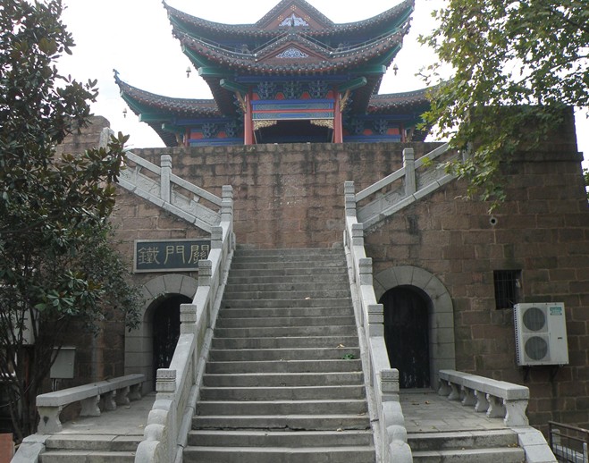 “鐵門關(guān)”有兩處:庫爾勒鐵門關(guān)和武漢鐵門關(guān)。庫爾勒鐵門關(guān)位于庫爾勒市北郊8公里處,扼孔雀河上游陡峭峽谷的出口,曾是南北疆交通的天險要沖,古代“絲綢之路”中道咽喉。晉代在這里設(shè)關(guān),因其險固,故稱"鐵門關(guān)",列為中國古代二十六名關(guān)之一。謝彬《新疆游記》中有"兩山夾峙,一線中通,路倚奇石,側(cè)臨深澗,水流澎湃,日夜有聲,彎環(huán)曲折,時有大風(fēng),行者心戒"的記述?!端?jīng)注》中稱鐵門關(guān)所在的峽谷為"鐵門關(guān)",后人叫它"遮留谷"。鐵門關(guān)自古以來就是兵家必爭之地,關(guān)旁絕壁上還留有"襟山帶河"4個隸書大字。如今關(guān)旁山坡上還留有古代屯兵的遺址。西漢張騫銜命出使西域曾路經(jīng)鐵門關(guān),班超也曾飲馬于孔雀河,故而人們又稱孔雀河為飲馬河"。唐代邊塞詩人岑參登鐵門關(guān)曾賦詩一首:"鐵關(guān)天西涯,極目少行客,關(guān)旁一小吏,終日對石壁,橋跨千仞危,路盤兩崖窄。試登西樓望,一望頭欲白"。這首詩,真實(shí)而生動的描繪出了鐵門關(guān)的險峻,前涼楊宣部將張植進(jìn)屯鐵門關(guān),擊敗焉耆王龍熙于遮留谷。