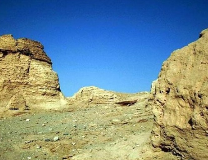 且末古城位于且末縣城西南約6公里的老車爾臣河岸臺地上,海撥款1,273米,遺址地表無植被,已沙化,呈雅丹地貌。在東西長約1公里,南北寬200米的范圍內(nèi),地表散布著大量陶片及鐵塊,煉鐵渣,曾采集到數(shù)件磨盤石殘塊,玻璃片,料珠。此外,在遺址中心區(qū)風蝕地表,尚殘存數(shù)間房屋及其他建筑遺址,1985年9月挖掘出的古代毛織品,古尸,遍地尸骨墓室,還有陶片弓箭,證明這是漢軍屯田駐守城邑遺址,古有的城墻全部坍塌于洪水域,還有環(huán)城護河遺址。初考證為元宋時期遺址,這里被稱為“車爾臣闊納協(xié)海爾”維語意為:且末古城。