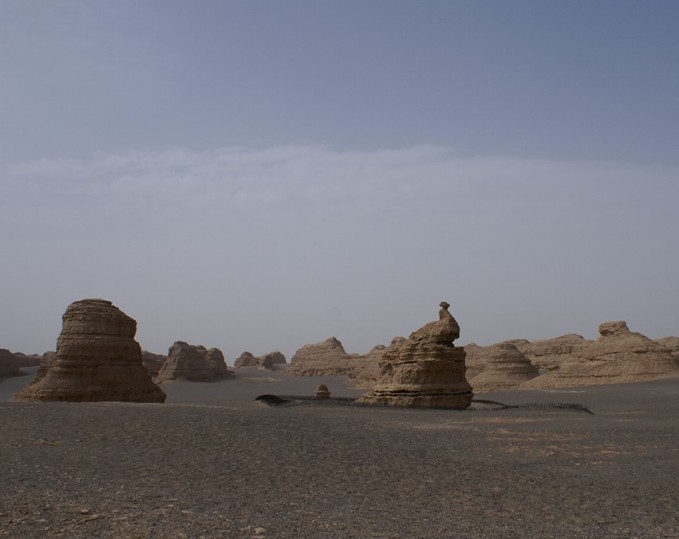 在若羌縣境北部的羅布泊地區(qū),有著大片“雅丹”風蝕地帶,他大至分布在羅布泊的東西北三面,其中以羅布泊東面的雅丹地形最為典型。這片風蝕地東西寬約35公里,南北長約100公里,面積達3500平方公里,崗阜上,覆蓋著一層白色的鹽堿土層,有的是一層很厚的精鹽,另有一部分崗阜,本身就是白膏泥,他們在清晨陽光的映照下,反射出燦爛的銀光,因此,古書稱其為“白龍堆"。