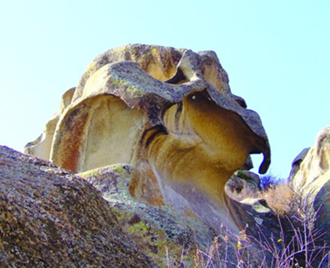 怪石溝是由花崗巖組成的穹窿構(gòu)造的山地,經(jīng)過(guò)億萬(wàn)年的風(fēng)霜雨雪的侵蝕。這里巖石裸露、怪石嶙峋,石群奇特美妙,呈現(xiàn)出千姿百態(tài)的自然景觀(guān),如天狗望月、石猴母子、大象戲水、迎賓將軍石、黑熊探海、喚云峰、沙魚(yú)石、孔雀石、烏龜石、野豬石、鷹嘴石、羚羊石、犀牛石,還有曲徑通幽、天橋橫貫的異境。真是鬼斧神工,自然天成,令人驚嘆不已。怪石峪的古代巖畫(huà)又是一道景觀(guān),主要是狩獵圖和動(dòng)物巖刻畫(huà)。怪石峪還有許多突厥古墓,距今有1300多年歷史,是游人考古探秘的理想去處。