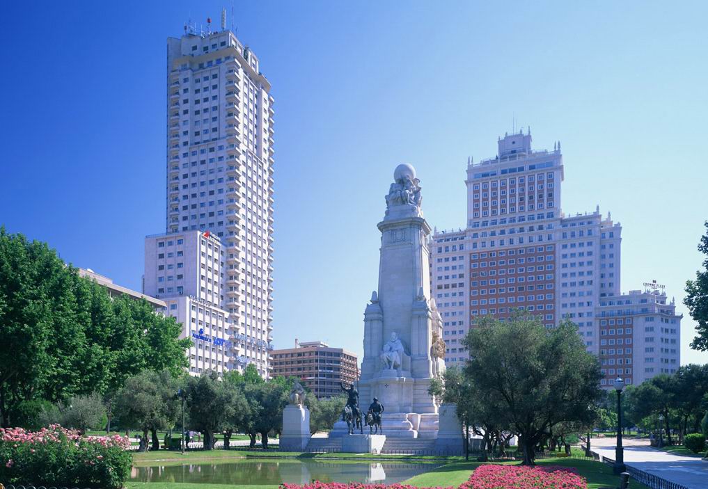 市內現(xiàn)代化的高樓大廈與風格迥異的古建筑摩肩并立、相映生輝。樹林、草坪和各種造型別致的噴泉和雕有古代小亞細亞人尊崇的自然女神尼貝萊塑像噴泉最吸人入勝。宏偉的阿爾卡拉門坐落在阿爾卡拉街頭的獨立廣場上,共有5道拱門,是馬德里著名的古建筑之一。財政部、教育部和西班牙的主要銀行坐落在阿爾卡拉大街兩側,建于1752年的王家美術學院收藏著牟利羅和戈雅等西班牙美術大師的名作。巍峨的塞萬提斯紀念碑聳立在西班牙廣場上,碑前有堂吉訶德和???bull;潘扎的塑像,巨大的碑身倒映在前面的水池之中,碑兩側是蔥郁的樹木;有“馬德里塔”之稱的西班牙摩天大廈位于廣場一側。
