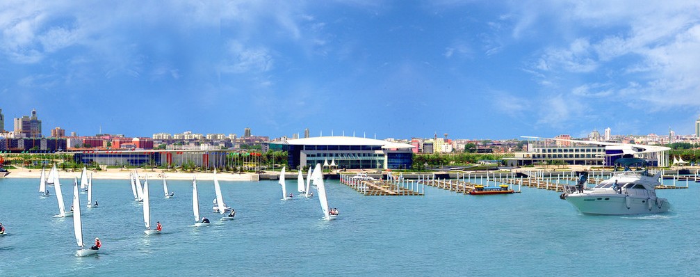 日照市世帆賽基地風景區(qū)位于中國日照市萬平口海域,總占地面積1.2平方公里。港池面積40萬平方米。分為淺水區(qū)、深水區(qū)、特深水區(qū)。主要設施有:浮動碼頭6條,停船泊位320個;帆船競賽上下水坡道150米;出???00米,擋沙提350米、防浪堤450米。陸域面積80萬平方米。主要設施有:帆船俱樂部7340平方米;水上控制中心6500平方米;艇庫丈量室2600平方米;停船廣場2.5萬平方米;集裝箱停放場1.5萬平方米;室外運動地兩處;帆船景觀雕塑3處;休閑棧道3000平方米;生態(tài)園林35萬平方米。