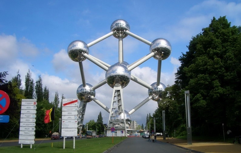 原子球 為比利時(shí)1958年在此地的展覽中心舉辦的布魯塞爾博覽會(huì)所設(shè)計(jì)的標(biāo)志建筑。設(shè)計(jì)者希望通過這一巨大的建筑表達(dá)微小的原子概念,并顯示人類和平利用原子的前景。構(gòu)思來源于原子結(jié)構(gòu)圖,九個(gè)巨大的金屬圓球由粗大的鋼管連接構(gòu)成一正方體圖案。版權(quán)所有聊城聊之旅國(guó)際旅行社有限公司,轉(zhuǎn)載必究!正方體的大小相當(dāng)于放大了1650億倍的鐵的正方體晶體結(jié)果。八個(gè)圓球位于正方體的八個(gè)角,另一個(gè)圓球位于正方體的中心。圓球直徑18米,連接各個(gè)球間的鋼管每根長(zhǎng)26米,直徑3米??傊?200噸,高102米??沙穗娞莸竭_(dá)離地100米高的頂端圓球觀賞布魯塞爾的風(fēng)景。其他圓球中為各種主題的科技展覽廳。分別陳列有太陽(yáng)能、和平利用原子能、航天技術(shù)、天文等方面的展品,以及有關(guān)比利時(shí)氣象事業(yè)的發(fā)展史、衛(wèi)星氣象、氣象雷達(dá)、氣象通訊方面的圖表。