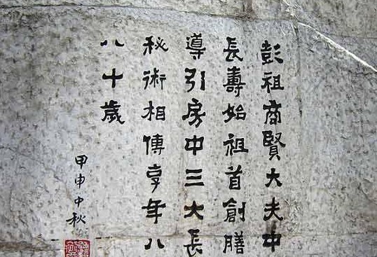 北魏酈道元《水經(jīng)注》“獲水”條云:(彭城)城之東北角,起眉樓於其上,號(hào)曰彭祖樓?!兜乩碇尽吩?,彭城縣,古彭祖國(guó)也。《世本》曰,陸終之子,其三曰籛,是為彭祖。彭祖城是也。下曰彭祖冢。彭祖長(zhǎng)年八百,綿壽永世,於此有冢,蓋亦元極之化矣!