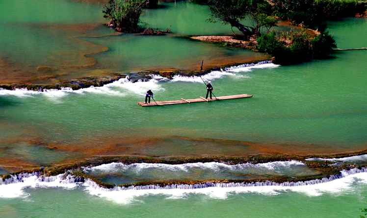 羅平多依河位于羅平縣城東南40公里,經(jīng)十萬(wàn)大山峰叢至多依寨子進(jìn)入景區(qū)。景區(qū)從多依寨至“雞嗚三省”的三江口,全長(zhǎng)12公里的河床上有近40個(gè)瀑布,兩岸古木修竹,色彩豐富,層次清晰。河水常年晶瑩剔透,蔚藍(lán)無邊。尤其是沿河兩岸盤根錯(cuò)節(jié)的干年古樹,仿佛就是一座龐大的自然根雕藝術(shù)展覽館。河道蜿蜒曲折,布依村寨沿河而布,吊腳樓隱現(xiàn)樹叢竹林之間,一派十足的熱帶風(fēng)光畫面。一水合三江、清江一邊淌、渾水一邊流的奇觀異景就在此顯現(xiàn)。