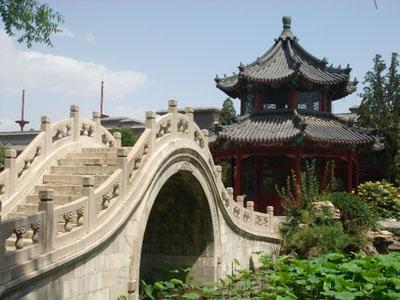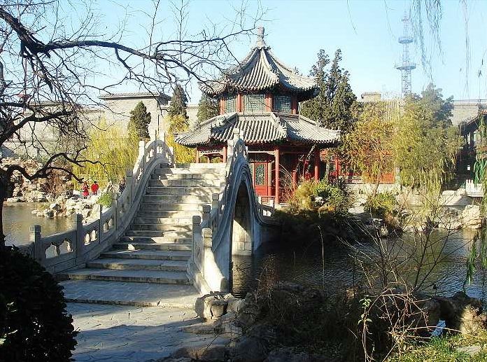 古蓮花池古蓮花池,地處保定市內(nèi)南市區(qū),正門坐南朝北??偯娣e為2.4萬平方米,其中池水面積7900平方米。池水以中心島為界分為南北兩塘,蜿蜒曲折的東西二渠將兩塘溝通一體。南塘呈半月形,外圍峭壁環(huán)峙,松柏滴翠。北塘呈不規(guī)則矩形,四周玉石堆岸,楊柳垂絲。原為張柔居所。