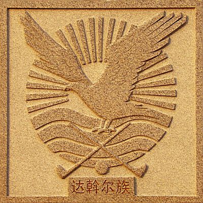民族園東邊有一個半徑45米的圓形休閑廣場,廣場中央矗立著高大的民族圖騰圓柱,柱身四周塑有達斡爾族曾崇拜的原始圖騰物和人們生產、生活的歷史場景,畫面精美、歷史感強、民族特色鮮明。柱頂有一只雄鷹(海東青)昂首振翅,搏擊長空,意寓勤勞、勇猛、智慧的達斡爾族及莫力達瓦人在向著美好的未來奮力騰飛。環(huán)繞圖騰柱的是反映達斡爾歷史上生產生活中使用的大輪車、弓箭、搖籃、神鼓等器物和人們飼養(yǎng)的羊、狗等。廣場上兩面達斡爾族歷史文化墻,版權所有山東聊城聊之旅國際旅行社有限公司,轉載必究!藝術地再現(xiàn)了達斡爾族的歷史神話傳說、生產、生活、文體活動等場面。