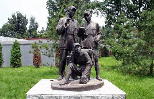 室外雕塑區(qū)位于展覽館的后廣場,設(shè)有六組雕塑:聶榮臻和美穗子,鄧拓、沙飛與新聞戰(zhàn)士,李勇和爆破組,戎冠秀與受傷戰(zhàn)士,國際友人白求恩,狼牙山五壯士,這些雕塑作品從不同側(cè)面反映了晉察冀根據(jù)地的特點,加深了觀眾印象。