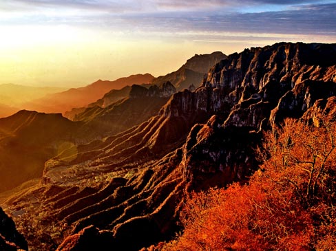 綿綿八百里太行,以巨龍騰飛之勢(shì)由黃土高原的東南端自東北向西南逶迤而下,在太行山末端的山與山的間隙中,山與中原的對(duì)接處,形成了一個(gè)大氣磅礴、美妙絕倫的勝地,這就是著名的世界圍棋發(fā)源地——山西省晉城的陵川縣。王莽嶺就坐落在縣城東部崇山峻嶺之中,她巍峨挺拔,雄偉壯闊,山勢(shì)崢嶸,絕壁如削,險(xiǎn)峰幻迭,云海浩瀚,蒼柏翠綠。 這一地區(qū)是華北平原和黃土高原的“分水嶺”,屬斷層地質(zhì)帶,形成了罕見(jiàn)的地質(zhì)景觀,她既有北方山水的雄闊壯偉,又有南方風(fēng)光的文靜秀美。版權(quán)所有山東聊城聊之旅國(guó)際旅行社有限公司,轉(zhuǎn)載必究!加上長(zhǎng)期閉塞,原始?xì)庀庥簦且粔K自然生態(tài)園,原始植被覆蓋率達(dá)90%,珍奇的鳥(niǎo)類(lèi)隨處可見(jiàn),山光水色,田園風(fēng)光、人文景觀構(gòu)成了一方神奇的人間仙境,來(lái)過(guò)此地的畫(huà)家、攝影家及文人墨客無(wú)不感慨:“八百里太行,此處才是她的真正靈魂所在”,這一未開(kāi)墾的處女地,是廣大攝影家及攝影愛(ài)好者的又一新去處。“千峰萬(wàn)壑爭(zhēng)攢聚、云山幻影瞬息變”。王莽嶺由于獨(dú)特的地理位置,形成了極為罕見(jiàn)的自然景觀。逢雨天云霧迷漫,遠(yuǎn)山近峰時(shí)隱時(shí)現(xiàn),山巒起伏,氣象萬(wàn)千。晴天間藍(lán)天白云,千溝萬(wàn)壑草木郁翠,群峰連綿盡收眼底。王莽嶺最美的是那些千姿百態(tài)的奇峰石林,它們座座拔地而起,尤如一根根頂天立地的石柱,又象一片片玉筍聳立,在霧靄云海中爭(zhēng)奇競(jìng)險(xiǎn)。更妙的是,在這些石峰之巔,均有參天的松柏覆蓋,在絕壁石隙間,亦有彎曲多姿的喬灌凌空飛旋。加之有珍禽異獸,百鳥(niǎo)爭(zhēng)鳴,令人目不暇接。
