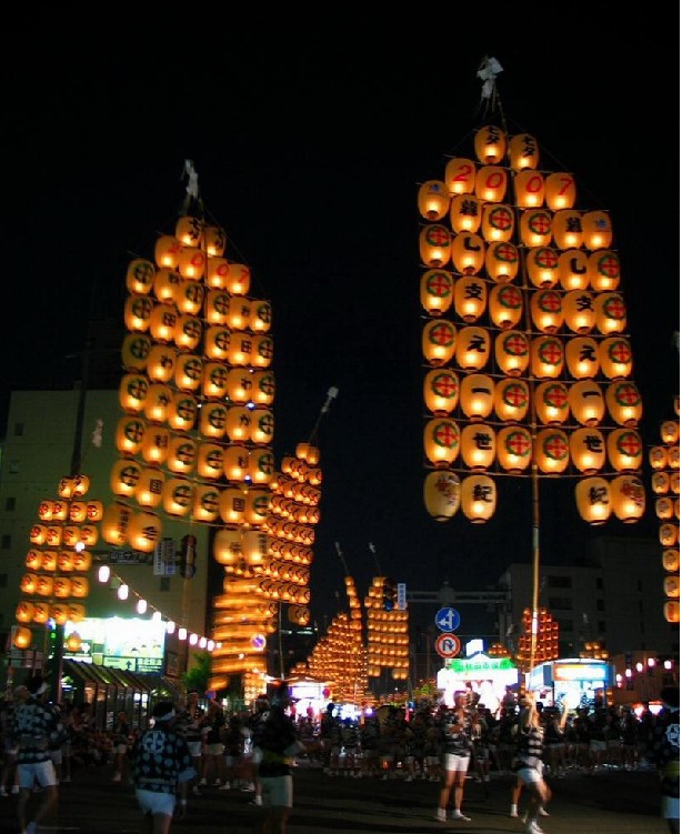 生鬼節(jié):被指定為國家重要無形民俗文化財,流傳于日本東北地方男鹿半島。兩個戴著鬼面具露著兩支大獠牙的人(一個是紅臉,一個是青臉),身上穿著稻草衣,握著菜刀,提著桶,挨家挨戶地拜訪居民,大聲叫著嚇唬那些不勤勞的男人、愛哭的小孩以及不愿意做家務的媳婦。該儀式,除了秋田縣能代市,山形縣游佐町、巖手縣大船渡市三陸町吉浜等多個東北一帶沿海地方都有存在。[20]秋田竿燈祭:日本東北地區(qū)代表性的夏季節(jié)慶,與青森縣的耐布它祭、仙臺的七夕祭并稱為東北三大祭。竿燈把幾十個馬燈整齊地掛在一個粗竹竿上,竹竿的頂端系著“御幣(剪成細條的紙)”,版權所有聊城聊之旅國際旅行社有限公司,轉載必究!撐竿的人將竿燈或托于手掌,或頂于額頭,或支于肩,或載于腰腹,猶如玩耍中國雜技。西馬音內盂蘭盆舞會(羽后町):為“日本三大盂蘭盆舞會”之一,參加者身著傳統(tǒng)服裝,戴著斗笠,并用黑布蒙住臉,伴隨著用笛子、鼓、三弦的演奏,一直舞蹈至深夜。西馬音內盆踴,已被列為重要無形民俗文化財產(chǎn)。舉行時間是8月16日至18日。