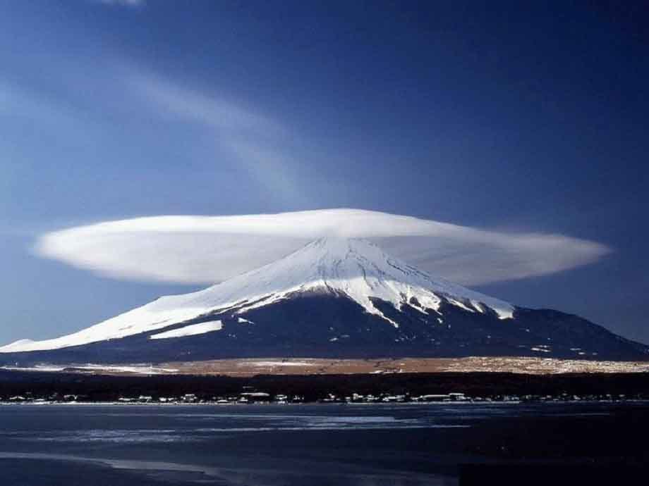 富士山位于山梨縣和靜岡縣境內(nèi),是日本最高山,是日本的象征和日本人的精神支柱,是富士箱根伊豆國(guó)立公園內(nèi)最吸引人的景致。它是一座高約3,776米的休眠火山,以勻稱、恬靜的外形著稱于世。冬天覆蓋著寂靜的白雪,每年6月末之前富士山第五級(jí)即2,305米以上的部分均覆蓋著皚皚白雪;夏天則一派生機(jī)盎然,7月1日是開(kāi)始登山的日子,夏季里第一批登山者可以觀賞到高山薔薇和其它高山植物。富士山的夏天十分短暫,8月末的傳統(tǒng)節(jié)日――吉田篝火節(jié)宣告登山季節(jié)的結(jié)束。富士山南坡和北坡的氣候變化截然不同。山頂與山腳的溫差達(dá)20℃,年均溫度為零下6.7℃。山頂?shù)臍鈮簝H為山腳的三分之二。