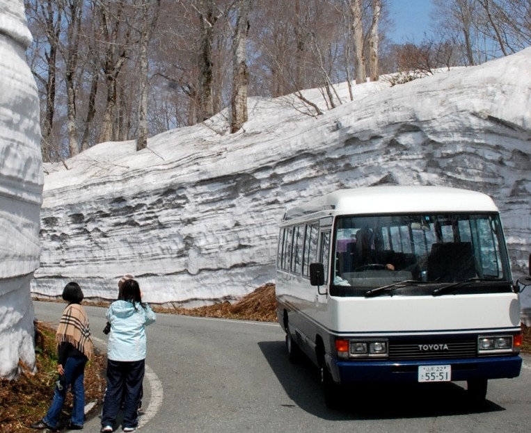 白布•天元臺:山形縣南端、沿著大樽川溪谷噴涌而出的白布溫泉,海拔850米,是一座由連接山形和福島的吾妻連峰的群山所環(huán)抱的高原溫泉,與藏王溫泉和高湯溫泉一起,被譽為奧州三大高原溫泉。溪谷里有香魚、沙丁魚和真鱒等,另外附近還有一個落差50米的白布大瀑布,水流在巖石上分兩段落下。在天元臺白布溫泉街盡頭的白布湯元車站,有空中纜車通往海拔1350米的天元臺高原。