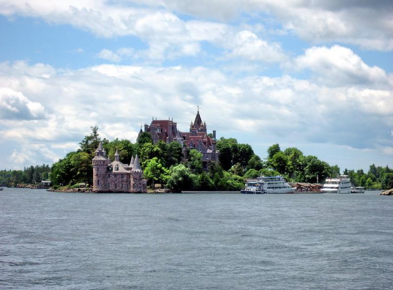 遠(yuǎn)處有一個(gè)心島,1900年喬治•博爾特投資2500萬美元,興建羅賓蘭德古堡獻(xiàn)給他的妻子露易斯,不幸的是1904年他的妻子逝世了。此建筑物又叫博爾特古堡。他傷心欲絕,再也沒有踏上島上一步,而將它捐給了美國政府。