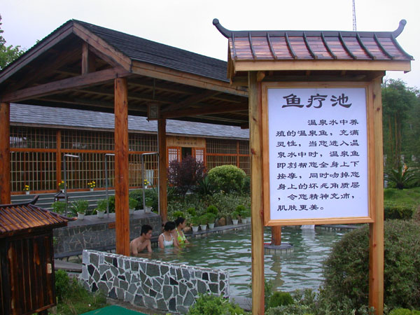 占地200畝的度假村內(nèi),建筑中西合璧,古今交融,格調(diào)新穎,氣勢恢宏,景色秀麗迷人,盛世漢唐景象與異國風(fēng)情在這里盡情顯現(xiàn)。自然園林式的露天溫泉區(qū),整體布局保持天然風(fēng)貌,怡人清新的鄉(xiāng)土田園格調(diào),青石板路縱橫交錯(cuò),亭臺(tái)廊榭,假山瀑布,小橋流水,鳥語花香,綠意蔥蘢,30多個(gè)大小形狀不一,功能各異的溫泉池座落有致,一池一景,老少皆宜,自然悅心。讓賓客遠(yuǎn)離都市的繁囂,身心舒泰,真正溶入大自然,沐浴大自然,享受大自然。