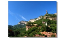 抱犢寨,舊名抱犢山,古名萆山,位于河北省石家莊鹿泉市西郊,距省會(huì)石家莊16公里,距首都北京288公里,是一外集歷史人文和自然風(fēng)光為一體的名山古寨。系國(guó)家四A級(jí)旅游區(qū)、河北省旅游先進(jìn)單位、石家莊十佳旅游景區(qū)。它東臨華北平原,西接太行群峰,一峰突起,崢嶸雄秀,四周皆是懸崖絕壁,遠(yuǎn)望猶如巨佛仰臥,眉目畢肖,其山頂平曠坦夷,有良田沃土660畝,土層深達(dá)66米,異境別開,草木繁茂,恍如世外桃源。有“天下奇寨”、“抱犢福地”之譽(yù)。