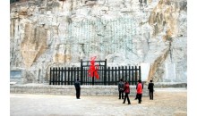 《水泊梁山記》是著名書畫大師范曾2002年專為水泊梁山風景區(qū)撰寫。先生懷著對英雄故里的一腔深情,慷慨揮毫、步其先人范仲淹《岳陽樓記》韻,全文368字,描述了水泊梁山河岳闊峻、草木蕭森的雄奇景象?!端戳荷接洝反笮湍ρ率?,通高7米、長14米,距地面10余米,單字最大55厘米見方,最小字30厘米見方,通篇368字占地近100平方米,氣勢恢弘、蔚為大觀,形成了南有《岳陽樓記》、北有《水泊梁山記》的文化格局。為旅游勝地水泊梁山再添景觀,現(xiàn)為水泊梁山風景區(qū)的主要景點之一。與梁山粗獷豪放的山體及周圍環(huán)境交融,深化了景區(qū)的水滸文化內(nèi)涵,成為進入梁山風景區(qū)山寨景區(qū)的標志性景觀,其所在廣場,亦成為在梁山舉行的與水滸、旅游有關(guān)的大型集會的場所之一。