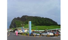 城山日出峰海拔182米,系10萬年前海底火山爆發(fā)而形成,位于濟(jì)州島東端(33°27′北,126°56′東),是一塊高聳的巨巖,其頂部有巨大的火山口。