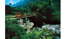 神農(nóng)溪,發(fā)源于神農(nóng)架主峰,流經(jīng)湖北巴東縣境內(nèi),由北向南穿行于深山峽谷之中,至巫峽口東匯入長江。神農(nóng)溪是一條典型的峽谷溪流,兩岸山峰緊束,絕壁峭聳,溪水在刀削般的峽壁間沖撞,水道曲折,湍急的溪流中有險(xiǎn)灘、長灘、彎灘、淺灘六十余處。水道雖狹急卻清淺,漂流極富刺激而又安全。