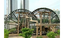 黃河水車,位于黃河河灣,距沙坡頭約6至7公里。這里聳立著6架木制巨型水車,經(jīng)河水沖擊,日夜緩緩旋轉(zhuǎn),并發(fā)出嘩嘩的巨大聲音,引起了游客的無限興趣。水車是黃河沿岸一種古老的提水灌溉工具。