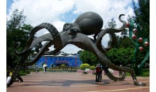 廈門海底世界占地17.5公頃,總建筑面積7500平方米。它是由新加坡華僑與鼓浪嶼風(fēng)景區(qū)建設(shè)開(kāi)發(fā)公司合作興建的,總投資1000萬(wàn)美元。這座花壇簇?fù)淼暮K{(lán)色水晶宮建筑,第一期工程先后建成了海洋館、企鵝和淡水魚(yú)館。其入口處在主體建筑外60米地方有一個(gè)設(shè)計(jì)獨(dú)特、別具一格、張牙舞爪的章魚(yú)雕,高6米、跨徑11.2米。它是廈門海底世界的標(biāo)志性建筑,也是游客們首先拍照留念的景觀。