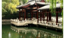 龍?zhí)?,位于濟南舊城西門外,洛源橋北,南臨趵突泉,北接大明湖。潭周名泉眾多,形成五龍?zhí)度?,為濟南四大泉群之一,內有泉池二十七處。公園的建園風格兼具有南北造園之精華,是以潭池溪港等景觀構成,質樸野逸為特點的園林水景園。此水域風景秀麗,柳絲醮波,鳴禽啾啾,荇藻漂浮,錦魚嬉戲,素有“夾岸桃花,恍若仙境”之美譽,風景幽雅獨具特色