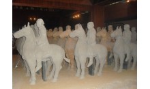 1984年12月,在江蘇徐州東郊的獅子山西麓發(fā)現(xiàn)了一組漢代兵馬俑。經(jīng)過考古人員的全面發(fā)掘,這支沉睡于地下兩千多年楚漢軍隊(duì)撩開了神秘的面紗。獅子山兵馬俑種類豐富、數(shù)量眾多,共有博袖長袍的官員俑、冠幘握兵器的衛(wèi)士俑、執(zhí)長器械的發(fā)辮俑、足登戰(zhàn)靴和抱弩負(fù)弓的甲士俑等10余種4000多件。