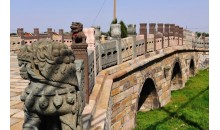 永安橋,俗稱大石橋,位于沈陽(yáng)市于洪區(qū)馬三家子鄉(xiāng)永安村。該橋始建于清崇德六年(1641年),是沈陽(yáng)市現(xiàn)存比較完整的一座石拱橋。永安橋在清初是一座重要橋梁,是清朝各代帝王東巡的必經(jīng)之路。 永安橋?yàn)槿资皹颍L(zhǎng)37米,外寬14.5米,路面寬8.9米 ,橋頭寬12米。