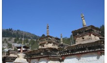 卡瑪多塔林位于類烏齊縣國(guó)道317線右側(cè),距縣城25公里。塔林依山位傍水、風(fēng)景秀麗、古木參天、蒼松翠柏、四季常青。在蔥郁翠柏中有一座別致的小經(jīng)堂,主供蓮花生大師像,左右各豎有幾根高大的轉(zhuǎn)經(jīng)筒。傳說(shuō),過(guò)去這兒有108個(gè)塔,現(xiàn)已恢復(fù)和修建的塔有幾十座。其造型各異,別具一格,既有要求嚴(yán)格的八佛塔,也有方形怪塔;既有幾米高的大塔,也有不到三米的小塔。