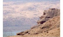 從沙坡頭乘快艇穿越黃河抵達河對岸的“q”形島,穿過大灣村向南迤邐而上,登上一座建有涼亭的小山包,放眼西望,但見500米開外,有一處紅褐色的小山包群,與周圍的沙丘和灰褐色山體形成了強烈的反差。 這紅褐色的山包群南側(cè)臨河處有2座突出的山頭,注目遠眺,但見一對雄雌雙獅豁然躍入眼簾:突前的一塊山巖分明是雄獅大而圓的鼻子;往上是棱角分明的眼眶和一雙乍醒徽啟的眼睛;再往上直到山頭的頂部,仿佛是扁平的額頭和卷屈飄逸的毛發(fā)。