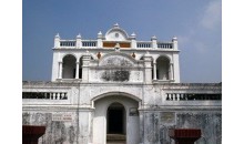 彭湃故居,坐落在海豐縣中風(fēng)景秀麗的龍津河?xùn)|面的海城鎮(zhèn)橋東社,坐北向南,面臨龍津河,始建于清末,主樓兩層,面寬三間12.9米,進深10.9米,前廊仿西式建筑,風(fēng)火式山墻,總建筑面積266平方米,樓下中間為堂屋,供有彭湃母親周鳳的遺像。彭湃故居在海豐縣城鎮(zhèn)東部的龍舌鋪。彭湃于1896年10月誕生于此。1925年3月,國民黨軍第一次東征攻克海豐后,周恩來曾在此與彭湃研究工作,革命軍顧問鮑羅庭、加倫將軍曾在此住宿。