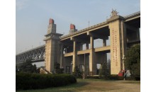 南京長江大橋,位于南京市西北面長江上,連通市區(qū)與浦口區(qū),是長江上第一座由我國自行設(shè)計建造的雙層式鐵路、公路兩用橋梁。上層的公路橋長4589米,車行道寬15米,可容4輛大型汽車并行,兩側(cè)還各有2米多寬的人行道;下層的鐵路橋長6772米,寬14米,鋪有雙軌,兩列火車可同時對開。其中江面上的正橋長1577米,其余為引橋,是我國橋梁之最。