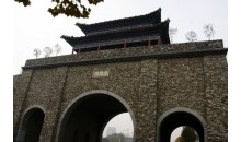渡江勝利紀(jì)念館坐落在六朝古都南京挹江門城樓上。挹江門城樓地處揚子江畔,石頭城北,與風(fēng)景秀麗的獅子山、八字山相連,該城樓建有一座仿明宮殿式樣的兩層宮殿式門樓,門,飛閣流丹,畫梁雕棟,古色雅致?,F(xiàn)存挹江門開辟于1921年,當(dāng)時只有一個門洞,原稱為海陵門。1929年為使孫中山靈樞順利送往中山陵,將其擴建為三道拱門,易名挹江門。