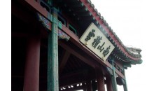 在麗正門北,是避暑山莊正殿。此殿規(guī)模宏大,殿前有外、內(nèi)午門,朝房、樂亭,后有四知書屋、寢宮等 建筑。內(nèi)午門為清帝每年到承德木蘭圍場進(jìn)行秋獵時(shí)舉行小型閱射之所,門上懸有康熙我御書“避暑山莊”四字匾額,東西兩壁是乾隆御制《閱射六韻》詩刻石。殿建于清康熙四十九年(1710),乾隆十九(1754)全部用楠木改修,故又稱楠木殿。面闊7間,單檐卷棚歇山頂。