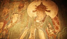 回龍寺建筑布局 回龍寺坐北朝南,一進(jìn)院落,單檐懸山頂,面闊三間,進(jìn)深四椽,平面近方形,佛殿前檐有“蟬肚”形狀的木構(gòu)件,佛殿內(nèi)有清代工筆淡彩壁畫50余平方米。