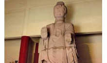 丈八佛石造像亦稱興國寺石造像,坐落在山東省博興縣城東南10公里處的寨郝鄉(xiāng)寨高村西北角,因其身高丈八,俗名丈八佛。佛像坐北面南,全高6.75米,底座高1.5米,底面積7.29平方米,為單身立式圓雕青石造像。佛像高肉髻,面方圓,微笑,豐頤大耳,法相莊嚴(yán),身披“褒衣博帶式”通肩袈裟,內(nèi)著僧支祗,胸前打結(jié),“施無畏與愿印”,赤足立于蓮花座上。