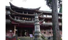 峨眉山圣水禪院原名神水庵、神水閣,有五重殿宇,全寺的殿堂和附屬房屋全系木制結(jié)構(gòu)。禪院原為明代安慶巡撫吳用先的舊居,因周圍“修竹萬(wàn)竿”,有“水竹色相繞,碧花動(dòng)軒楹”(唐,孟郊 《旅次洛城東水亭》)的意境,取名“水竹居”。明萬(wàn)歷末年(約公元1619年),因水竹居前有“玉液”神水,遂改宅為寺,名“神水庵”。寺院前有一塔,傳為隋代智者大師衣缽塔。