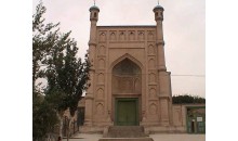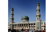 汗騰格里寺位于市南門。因寺院地處南門,故得名南門大寺。1902年進(jìn)行過重建,1987年前,在原來南關(guān)清真寺的基礎(chǔ)上又加以擴(kuò)建,改用今名“汗騰格里”(王中之王的意思),是市內(nèi)較大的維吾爾族清真寺之一。重建后的大寺,位于南門臨街,坐西向東,外觀壯麗,造型美觀,四座高大尖塔,簇?fù)碇虚g的大圓屋頂,兩側(cè)另有兩個小圓頂陪襯,具有濃郁而典雅的伊斯蘭建筑風(fēng)格。
