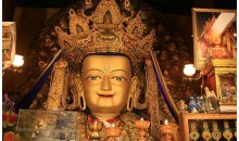 在日喀則南木林縣境內(nèi),距縣城70公里,海拔4700米。該寺已有千年歷史,信奉寧瑪派,曾有1個(gè)大經(jīng)堂、11個(gè)殿堂,主供佛為蓮花生大師。1984年,在原寺的廢墟上修復(fù)了大經(jīng)堂和9個(gè)殿堂,供有蓮花生師徒三尊佛。寺內(nèi)藏有16件珍品,有證士曲尼囊單從伏藏谷挖掘出的蓮花生主尊三像、噶瑪巴的鞋子、空行母益希嘉措的金剛杵、黑石、右旋的海螺、蓮花生大師在石頭上留下的右手指印等。寺廟北面的棕山上有三處禪房和修行洞。每年藏歷12月22日至30日,該寺舉行跳神和驅(qū)鬼儀式。