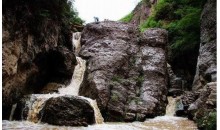 胭脂峽位于涇源縣城東北8千米的黃花鄉(xiāng)羊槽村東側(cè),東臨崆峒山,西接六盤(pán)山,南與老龍?zhí)断嗤?,峽谷全長(zhǎng)45千米,形成于8億年前的奧陶紀(jì)?!半僦币幻怯纱呵飼r(shí)代在這里繁衍生息過(guò)的少數(shù)民族“焉支氏”、“焉支”部落演化而來(lái)的。