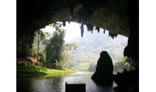 陽春玉溪三洞全長3公里,均可坐船瀏覽。第二洞長330米,水深2-5米,水面寬20-30米,河水清澈如玉,水中多生長鯉魚。洞中景物豐富,尤以“三變石”為趣,詩人張永枚曰:“遠似漁翁釣清流, 近如獅子滾繡球,忽變犀牛望明月,一石三景迷輕舟”。第一洞頂?shù)摹盎使凇笔?,酷似皇冠,游人在船上隨即可拍攝一幅頭戴皇冠的照片。