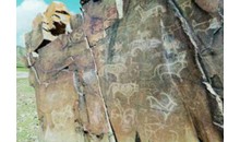 魯芒溝巖畫位于天峻縣天棚鄉(xiāng)之西南,溝為東南-西北向,溝口處有西寧-天峻公路橫穿,溝東西兩側(cè)均為高山,山間和溝谷間牧草叢生,為良好的天然牧場。在溝內(nèi)約4公里處東側(cè)為石山,石山根部為山體潰塌而落下的大石塊,這些石塊表面有一層油黑發(fā)亮的氧化面,巖畫就制作在這些大石塊上,共有3處,分別刻在3塊相距不遠(yuǎn)石面較平的大石塊上。