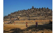 婆羅浮屠位于印度尼西亞,大約于公元750年至850年間,由當(dāng)時統(tǒng)治爪哇島的夏連特拉王朝統(tǒng)治者興建?!捌帕_浮屠”這個名字的意思很可能來自梵語"Vihara Buddha Ur",意思就是“山頂?shù)姆鹚隆?。后來因為火山爆發(fā),使這佛塔群下沉、并隱蓋于茂密的熱帶叢林中近千年,直到19世紀(jì)初才被清理出來。與中國的長城、印度的泰姬陵、柬埔寨的吳哥窟并稱為古代東方四大奇跡。