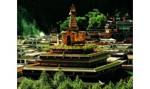 拉卜楞寺西南角,由三世貢唐倉(cāng)?貢曲乎丹貝仲美大師建成于1805年,原名現(xiàn)見(jiàn)解脫大金塔,因塔內(nèi)供有從尼泊爾迎請(qǐng)來(lái)的無(wú)量光佛(阿彌陀佛)像而享譽(yù)海內(nèi)外,寶塔造型別致,工藝精巧,在建筑藝術(shù)與宗教意義上達(dá)到了完美神圣之境界?,F(xiàn)存寶塔由六世貢唐倉(cāng)?丹貝旺旭大師為丕振宗風(fēng),宏教利民,而于1991年2月8日在原寶塔遺址舉行凈地儀軌,主持籌建。